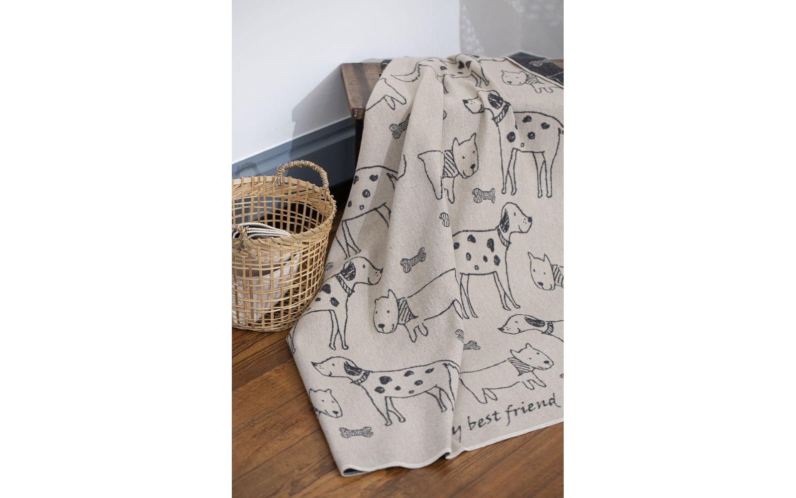 DAVIDFUSSENEGGER - Hundedecke Best friends allover groß 100 x 140 cm Farbe Natur