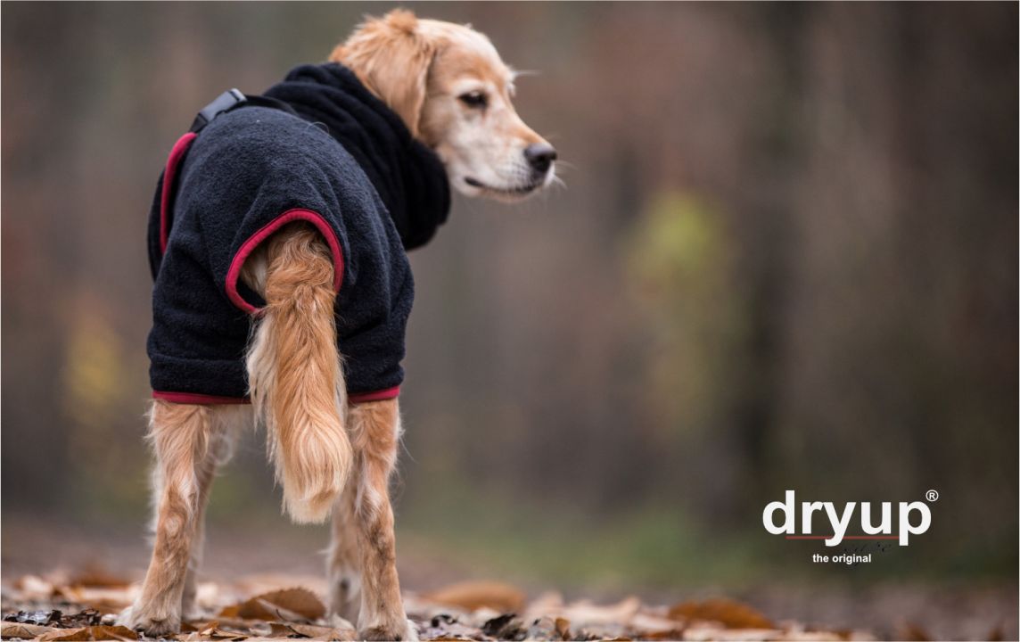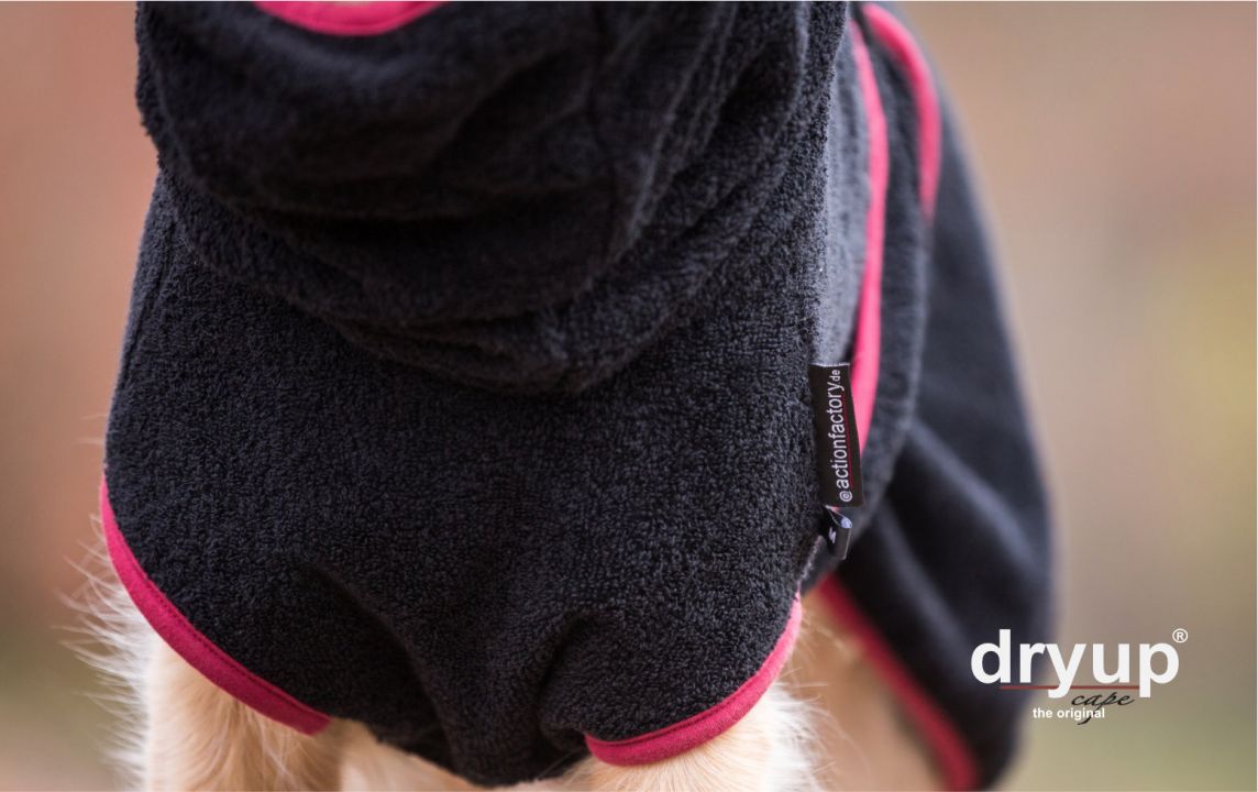 Das Dryup Cape ist ein Hundebademantel, der speziell für den Aufenthalt in der Wohnung oder den beheizten Kofferraum, bzw. das Auto entwickelt wurde. Es eignet sich ideal um den Hund nach einem Spaziergang im Regen oder einem Bad im See zu trocknen und gleichzeitig die Wohnung sauber zu halten. Das Dryup Cape ist aus 100% Frottee- Baumwolle gefertigt. Die großen Schlingen dieses hochwertigen Naturfaser- Frottees sind einzigartig, wie kein anderer Stoff in der Lage, die Nässe in ihren Fasern aufzusaugen und vom Hundefell abzuleiten. Der Baumwoll- Frottee lädt sich beim Abrubbeln des Hundes nicht statisch auf.