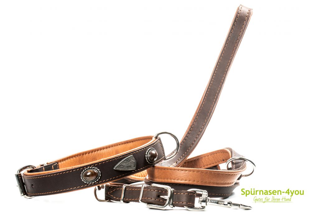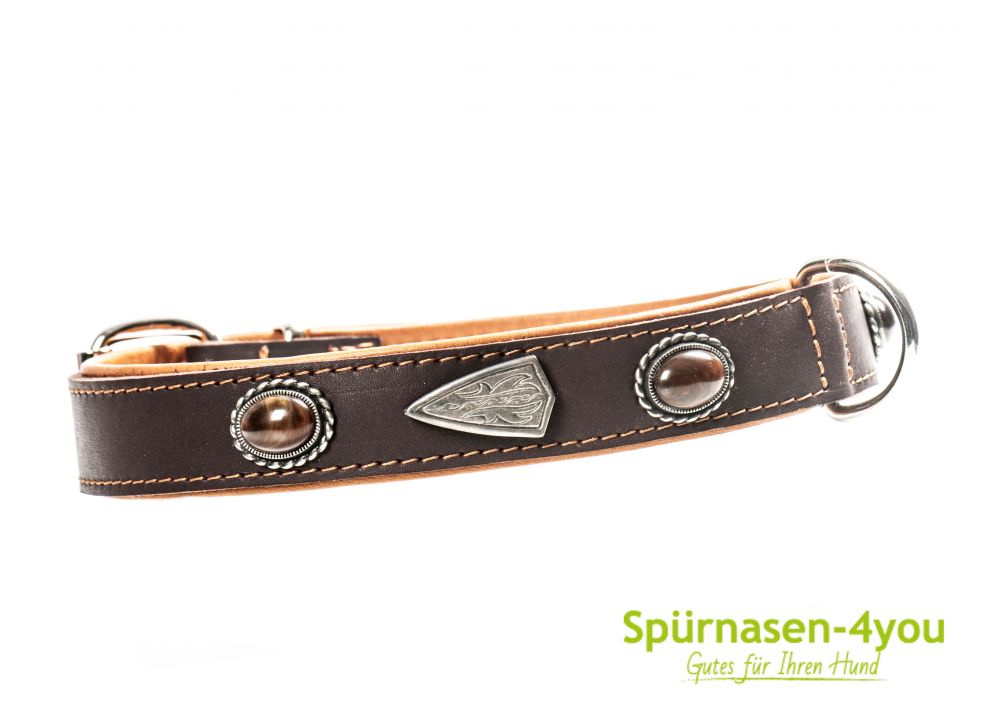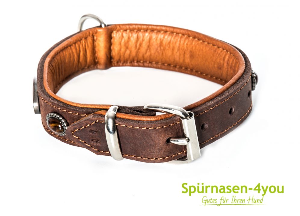 Lederhalsband Kairo Schmuckhalsband Bernstein Braun / Alle Größen 3cm Breite für mittelgroße bis große Hunde: