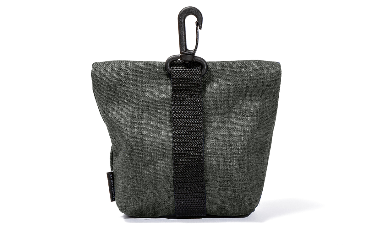 Großer Eingriff, extravaganter Verschluss. Die Leckerlitasche ist aus beschichtetem Leinen gefertigt.